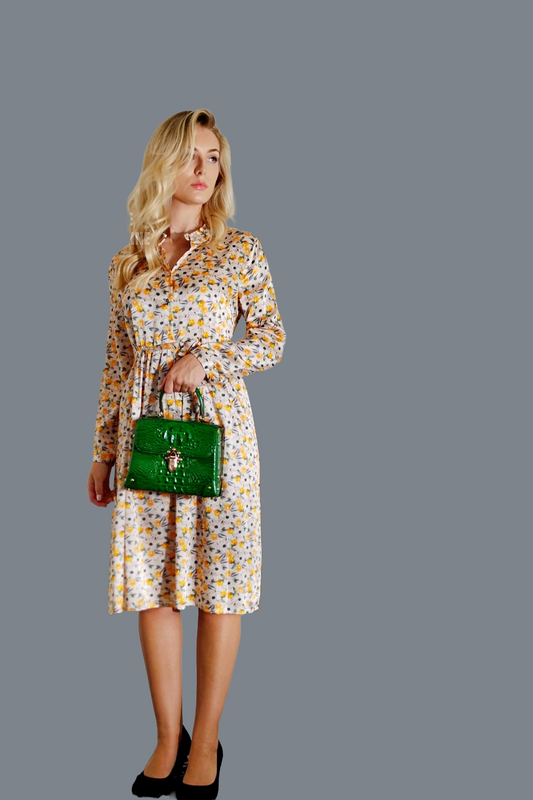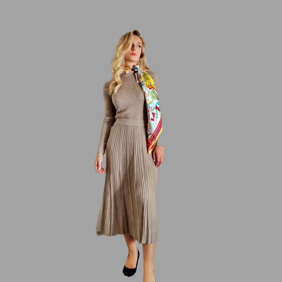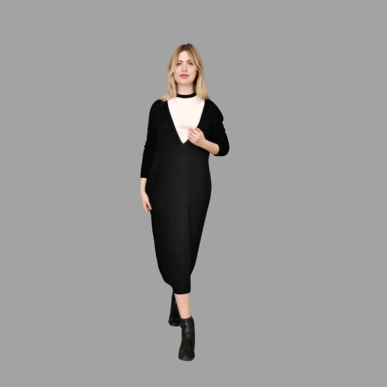100% Merino Wool Midi V neck Dress Wedding guest dress