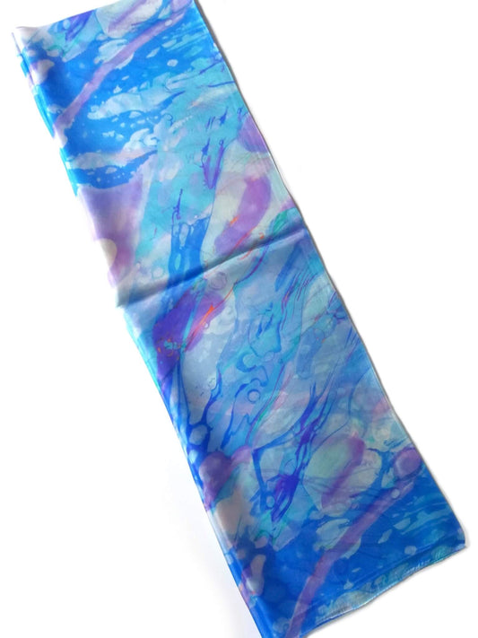 Regenbogenreichweite| Großer Seidenschal Bloom Blue