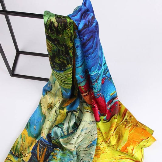 Seidenschal-Kollektionen|Blütensortiment|Ölgemälde-Design|Blau|Langer Seidenschal
