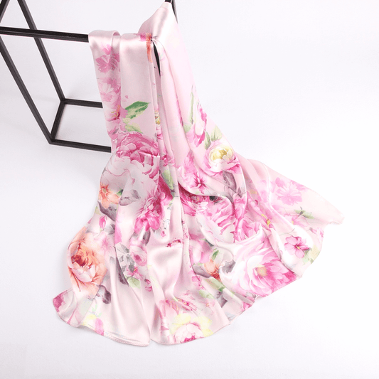 Seidenschal-Kollektionen|Blütensortiment|China Rose Design|Rosa|Langer Seidenschal