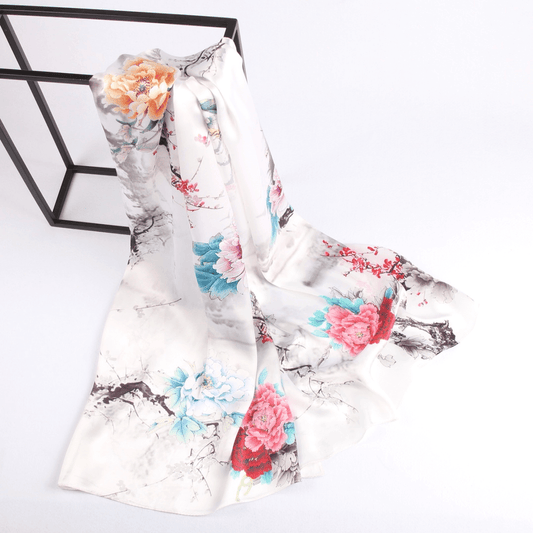 Seidenschal-Kollektionen|Blütensortiment|Blumenmischung|Weiß|Langer Seidenschal